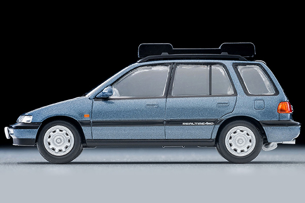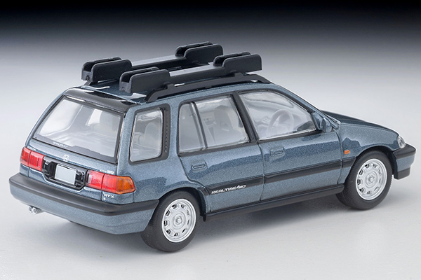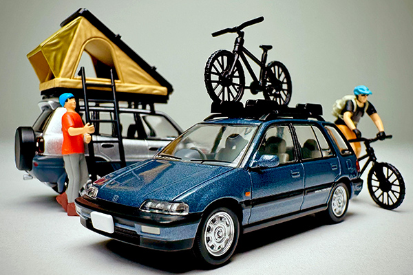 TOMYTEC TLV 1/64 LVN297c Honda Civic Shuttle RT X (Blue) 1990 Model with Figure and Mountain Bike