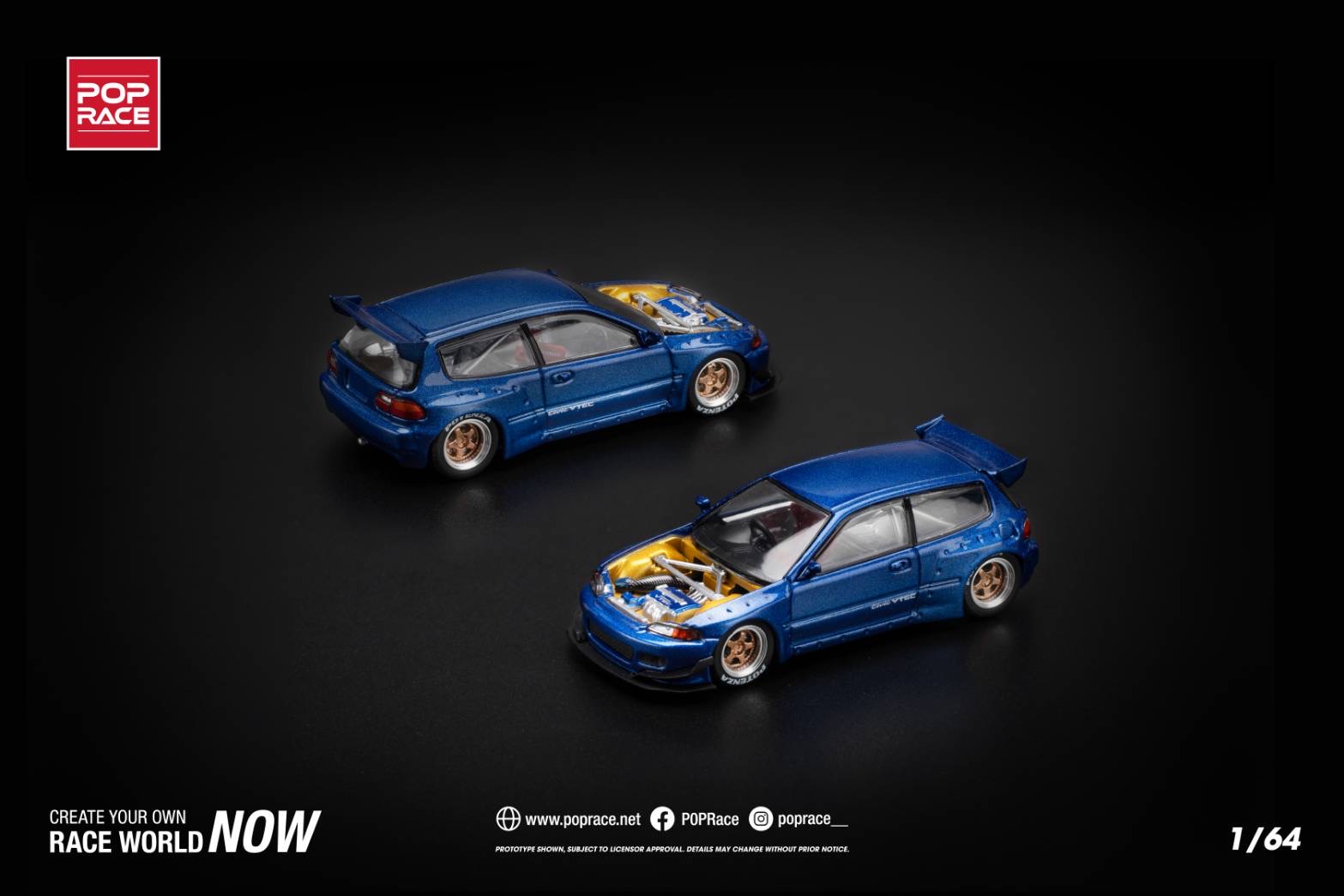 POP RACE Pandem Civic EG6 Metallic Blue With Open Hood